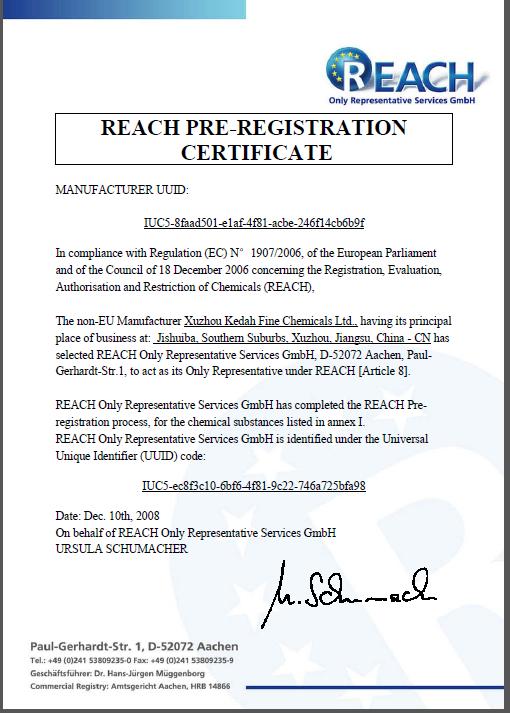 REACH Xuzhou Kedah Fine Chemicals Ltd