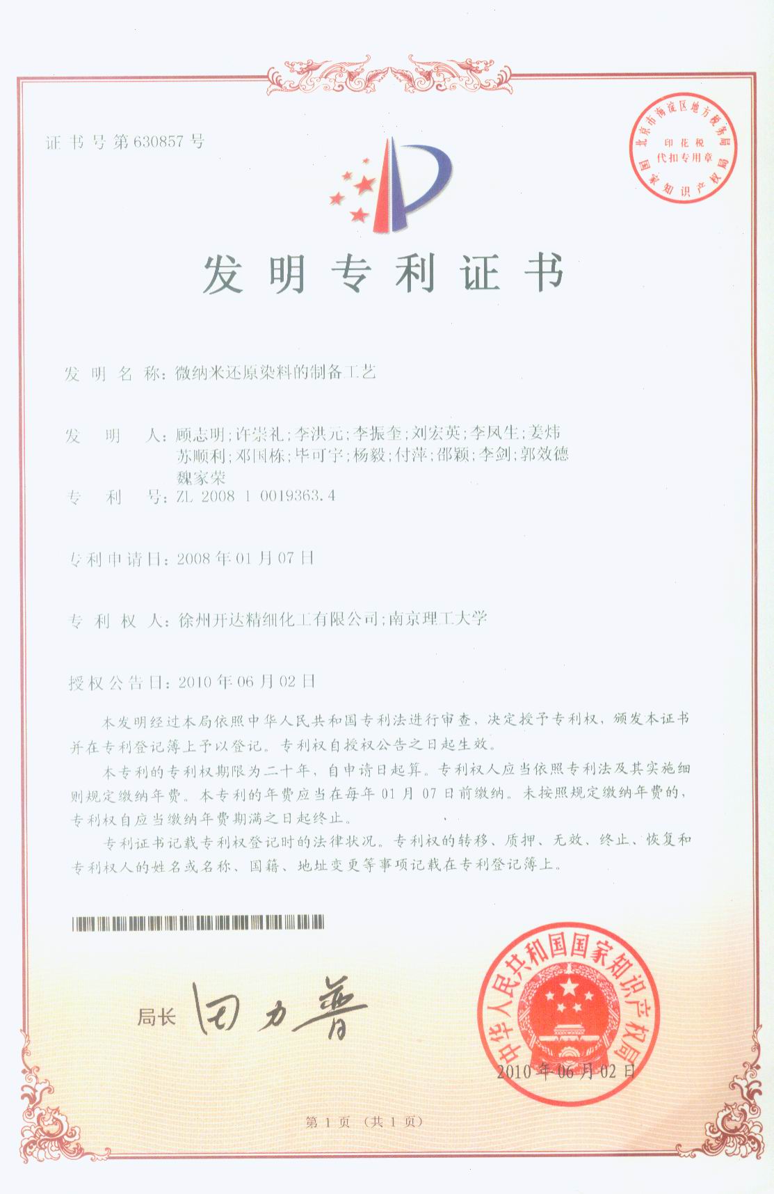 patent of production method of micro-nano vat dyes