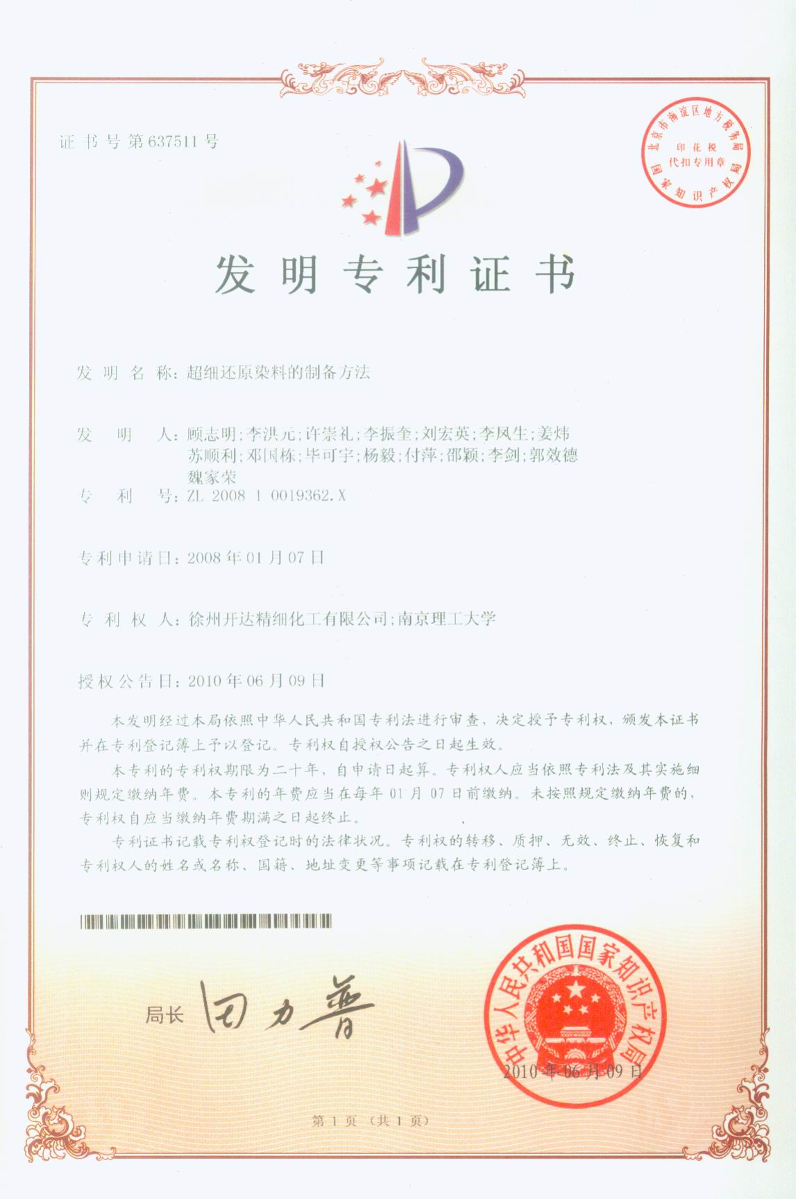 patent of production method of superfine vat dyes